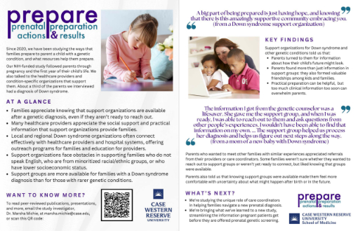 - 2025: Michie M. “Prenatal preparation as an outcome of genetic testing: What parents need and the roles of healthcare providers and support organizations.” Down Syndrome Collaborative (online).